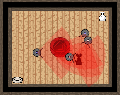 You play as a cat stuck in a time loop where every few seconds you are warped back to your cozy cat bed. Watch out for the sweeper robots who will push you around and stop you from accomplishing your cat goals of smashing a vase.